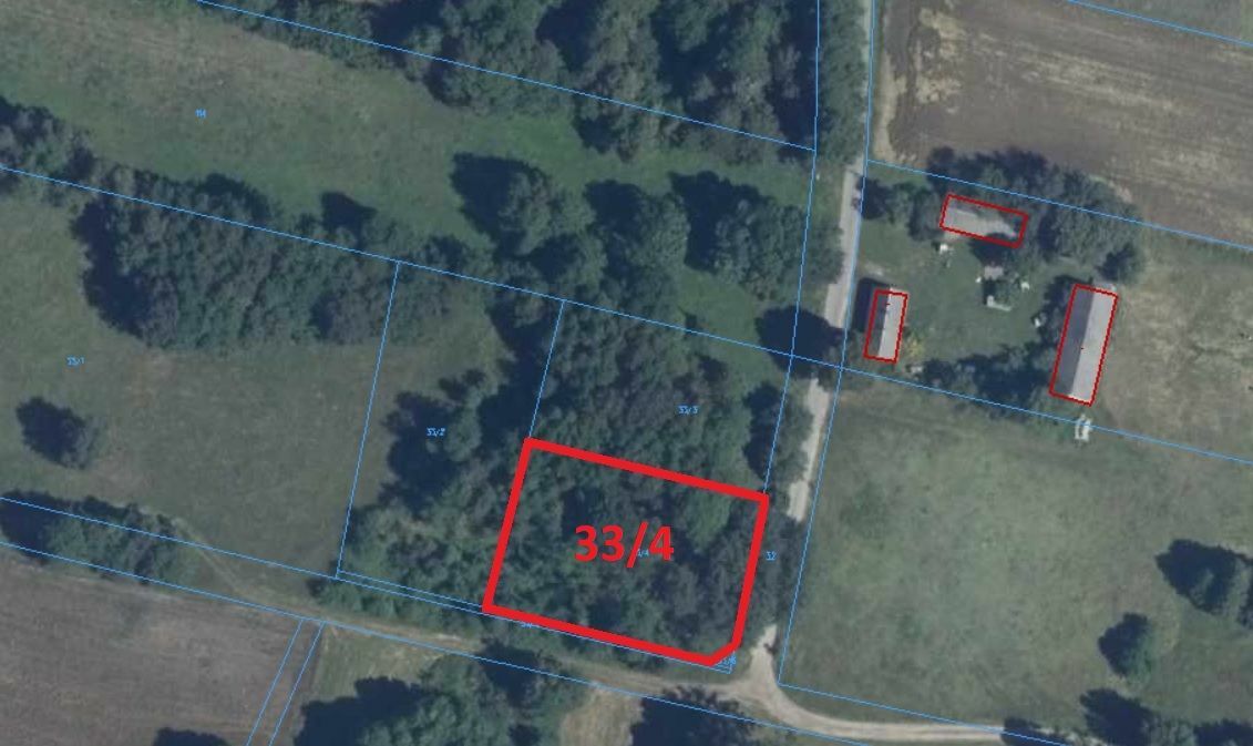 Naniesienia: Działka z małą ilością drzew, porośnięta łąkami i krzakami.